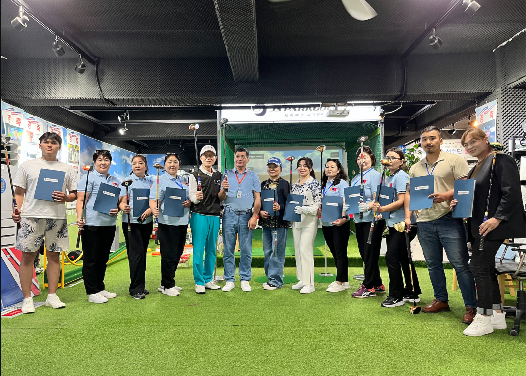 몽골 파크골프협회 회원 12명이 JS파크골프 본사를 방문하여 파크골프 기초교육을 받고
